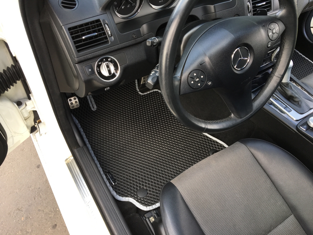 EVA коврики для автомобиля Mercedes С-класс W204 2011 - 2015 (рестайлинг) — это лучший выбор. Покрытие из этого ячеистого полимерного материала покупают сотни автолюбителей. Коврики из ЭВА долговечные, прочные, красивые. Сроки службы изделий — от 5 лет. Они не выделяют вредных веществ, ничем не пахнут. Коврики защищают пол автомобиля от грязи и влаги, а салон — от лишней пыли.